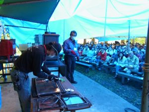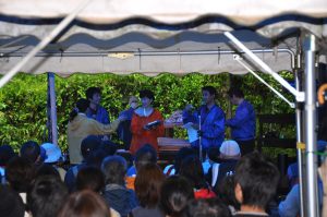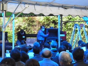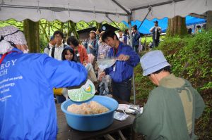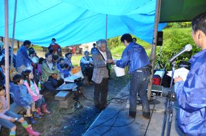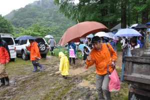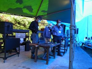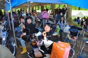 雨天のため、青いテントの中で講習にご参加いただきました。