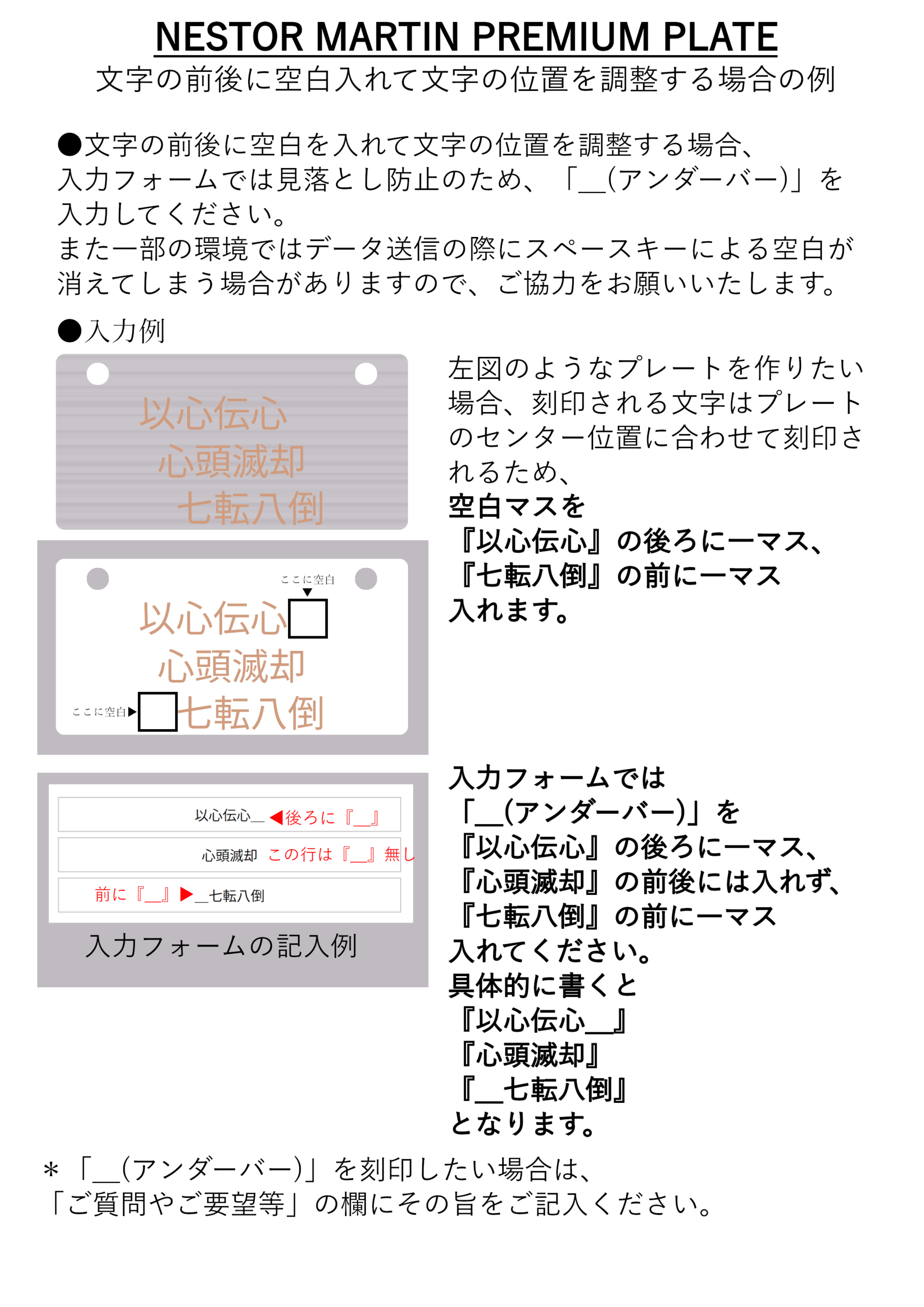 文字を刻印可能な範囲はプレート内に三行が基本となります。